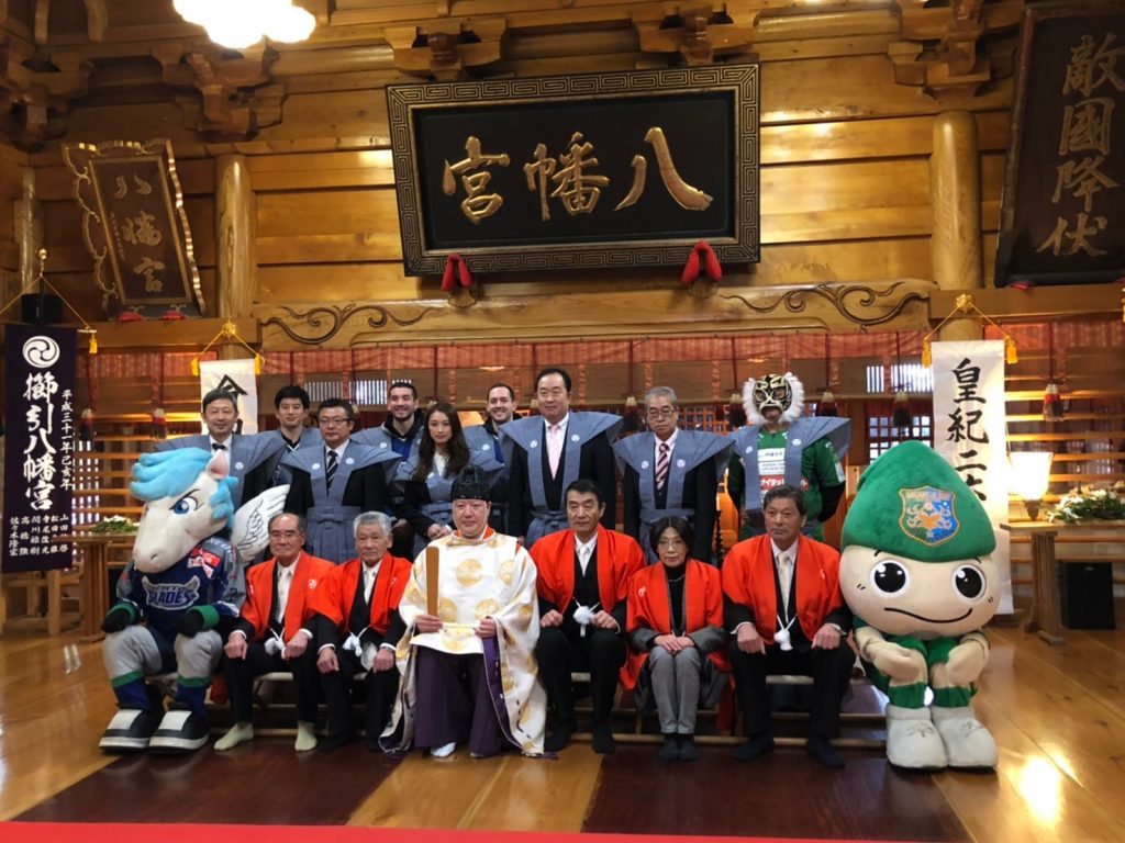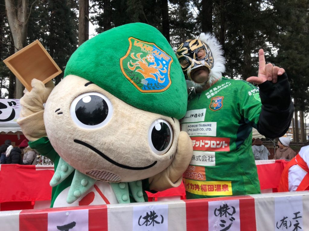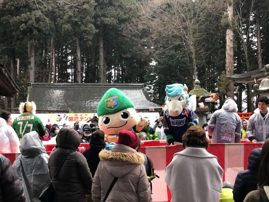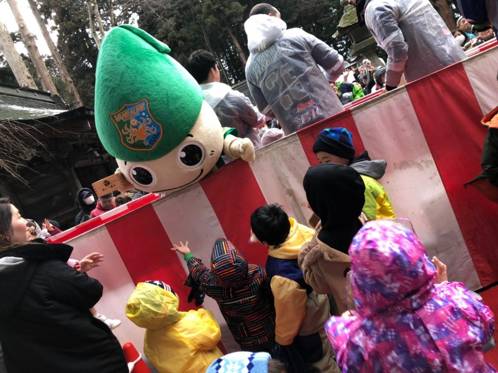 本日、櫛引八幡宮で行われた節分開運招福 祈願祭にヴァン太が参加しました。生憎の雨でしたが、多くの方にお集まりいただき、盛大に行われました。