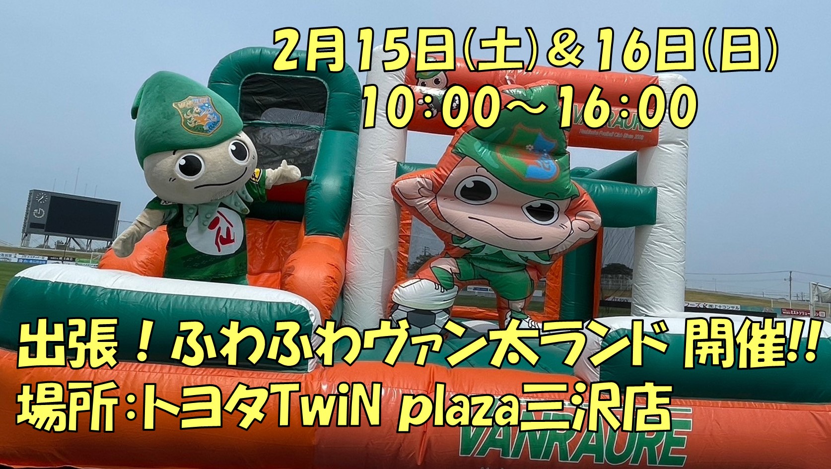 この度、2月15日(土)・2月16日(日)にトヨタTwiN plaza三沢店にて開催のイベント「BABY KIDS FESTA」へ、「ふわふわヴァン太ランド」が参加することが決定いたしましたのでお知らせいたします。