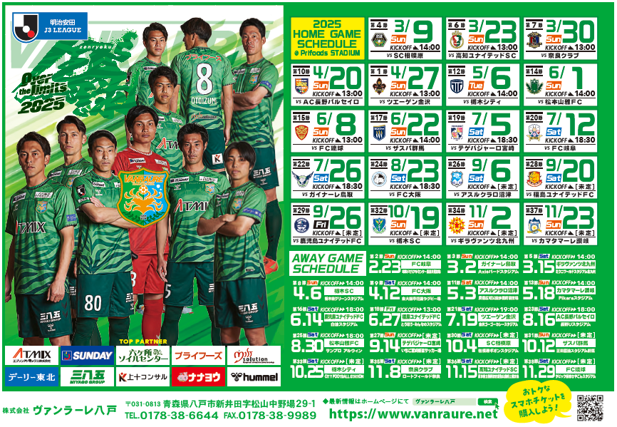 日頃より、ヴァンラーレ八戸へ厚いご支援、ご声援を賜り、誠にありがとうございます。
