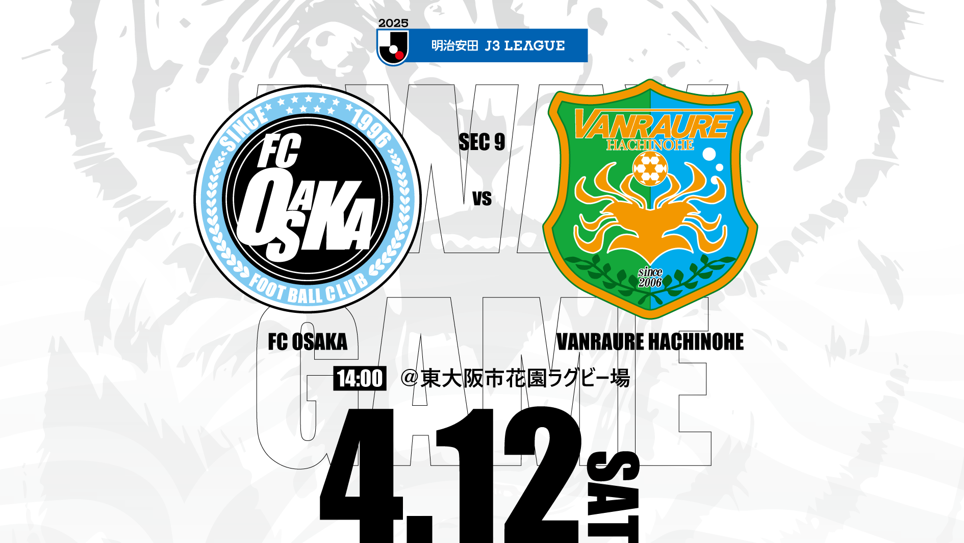 4月12日(土)に開催される2025明治安田J3リーグ第9節 FC大阪戦について、下記の通りご案内いたします。