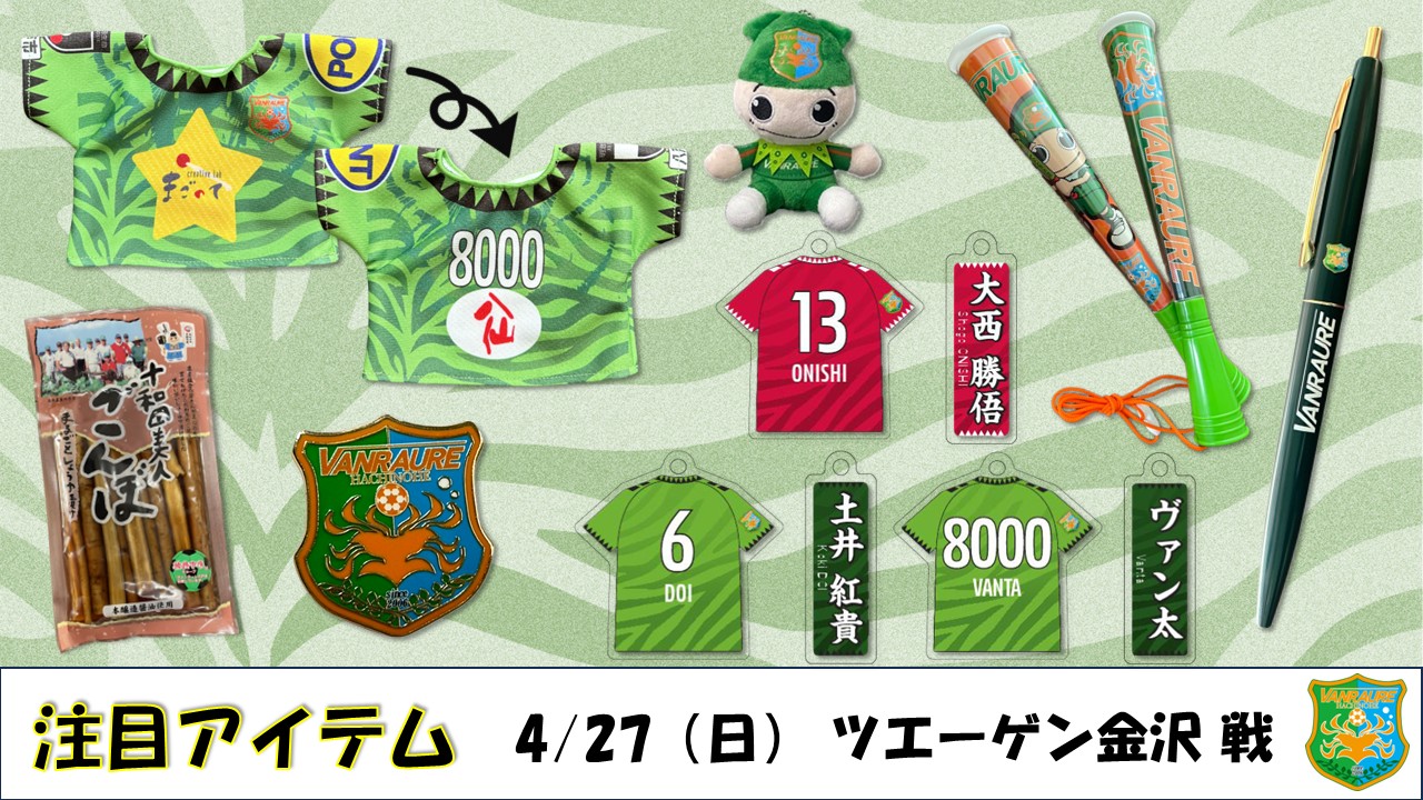 4月27日(日)に開催される明治安田J3リーグ 第1節 ツエーゲン金沢 戦のグッズ情報をお知らせします。