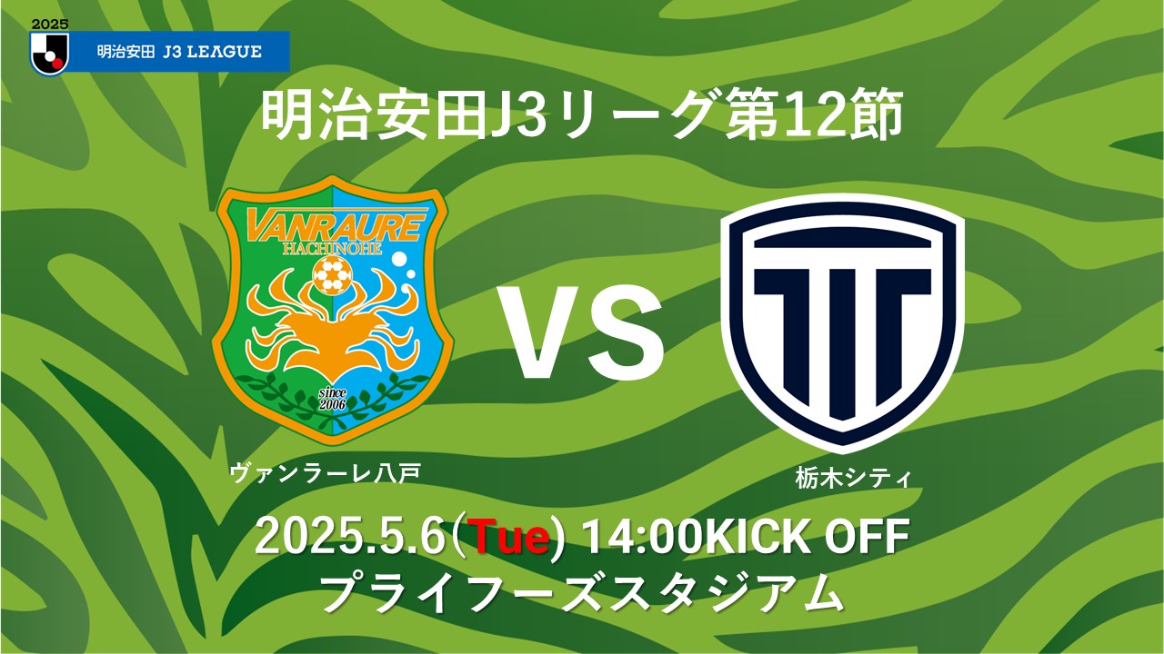 5月6日(火・休)に行われる2025明治安田J3リーグ第12節 栃木シティ戦について、下記の通りご案内いたします。