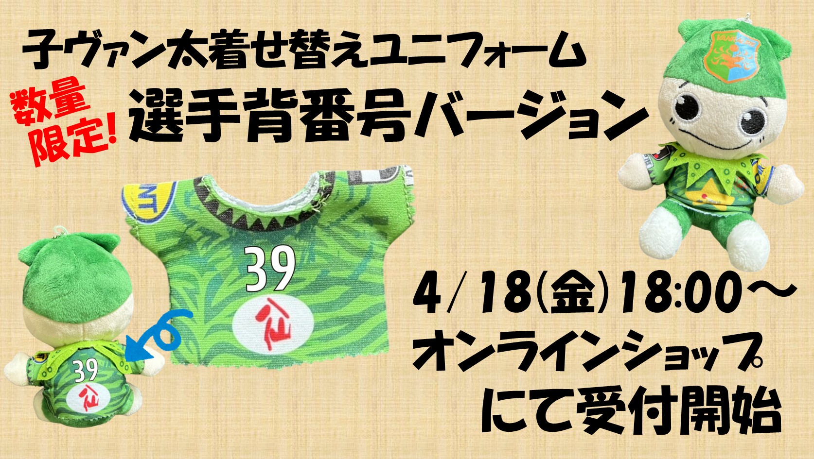 「子ヴァン太の着せ替えユニフォーム 選手背番号バージョン」を、オンラインショップにて受付いたしますので、下記の通りお知らせいたします。