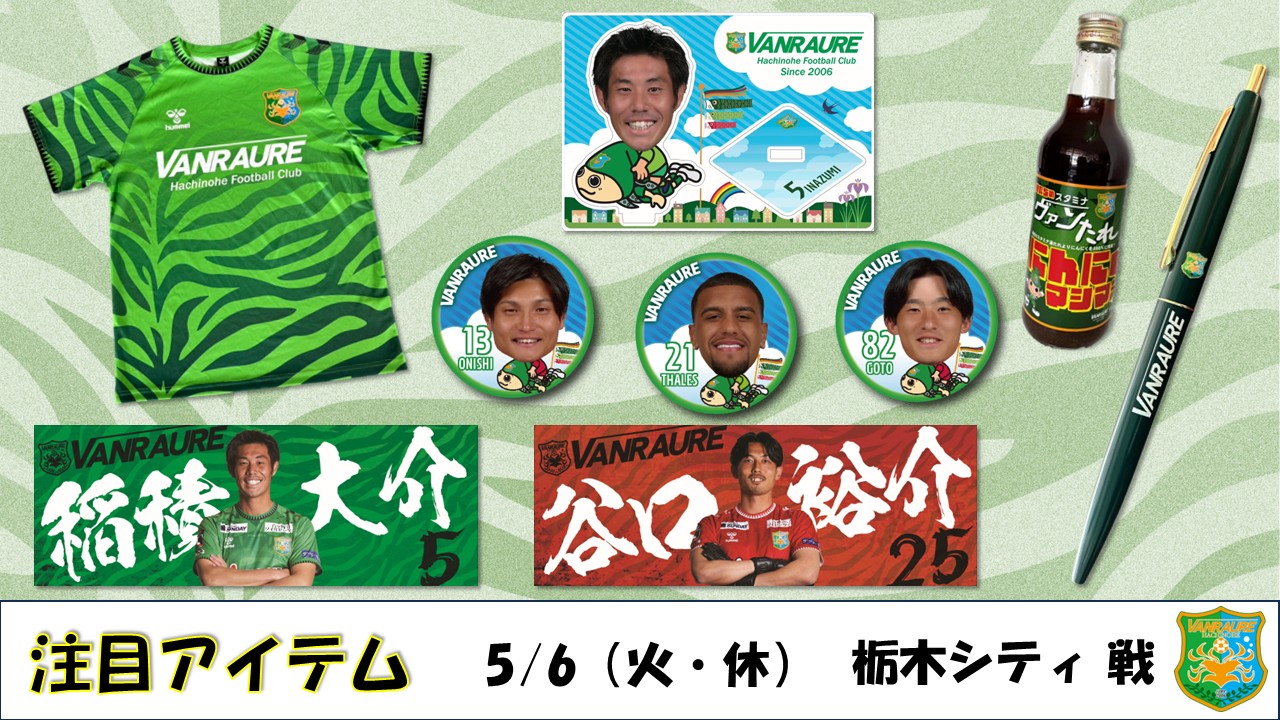 5月6日(火・休)に開催される明治安田J3リーグ 第12節 栃木シティ 戦のグッズ情報をお知らせします。