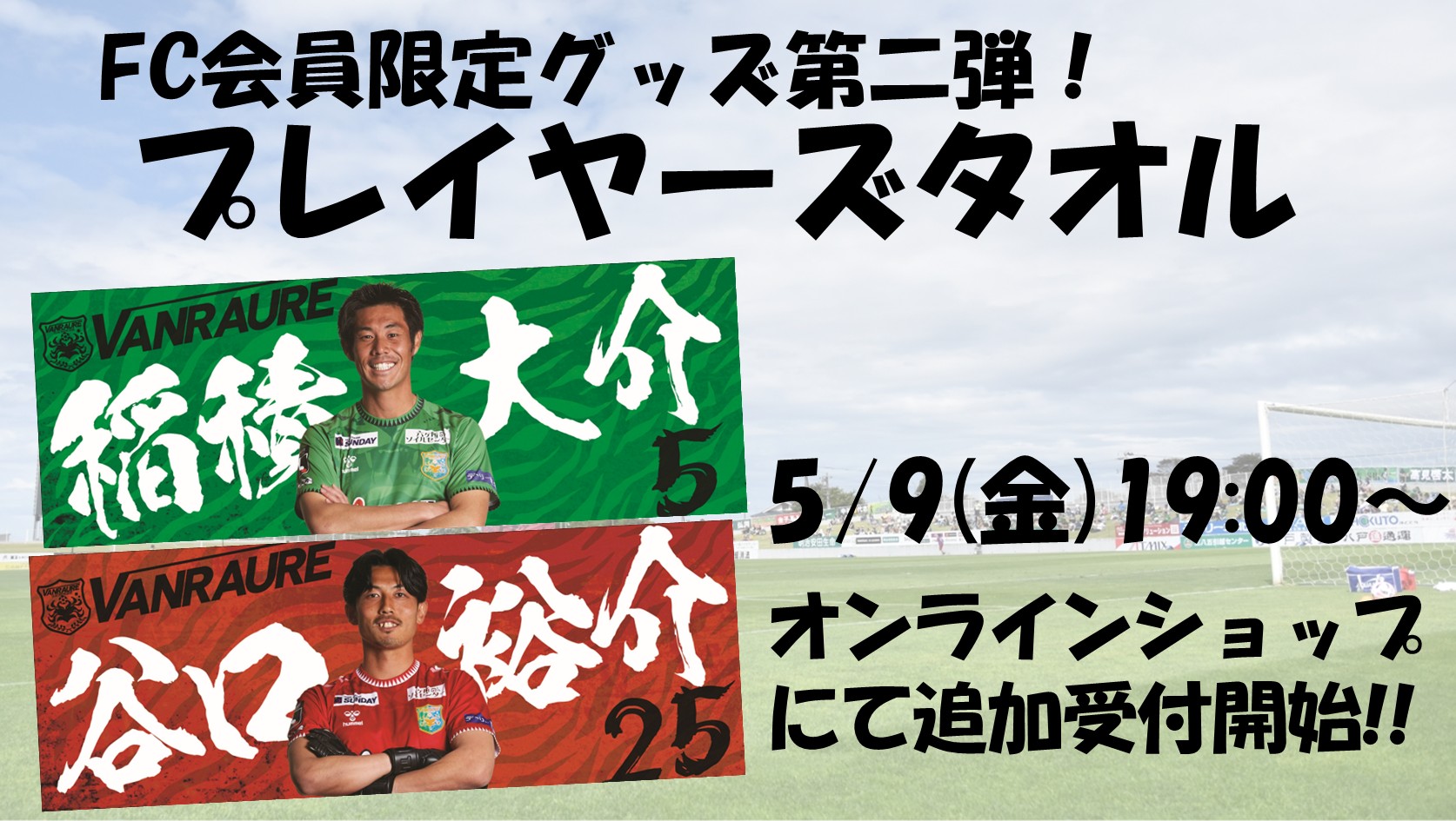 ヴァンラーレ八戸公式ファンクラブ2025会員限定グッズの第二弾!「プレイヤーズタオル」