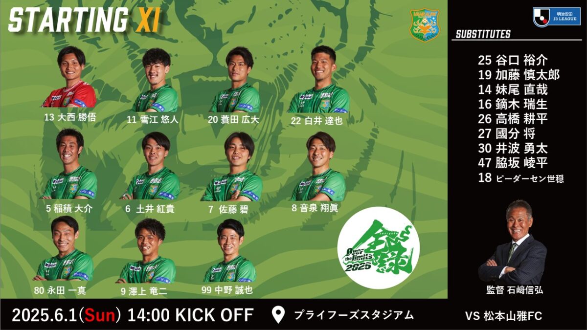2025年6月1日(日)に行われました2025明治安田J3リーグ第14節 松本山雅FC戦の結果をお知らせいたします。