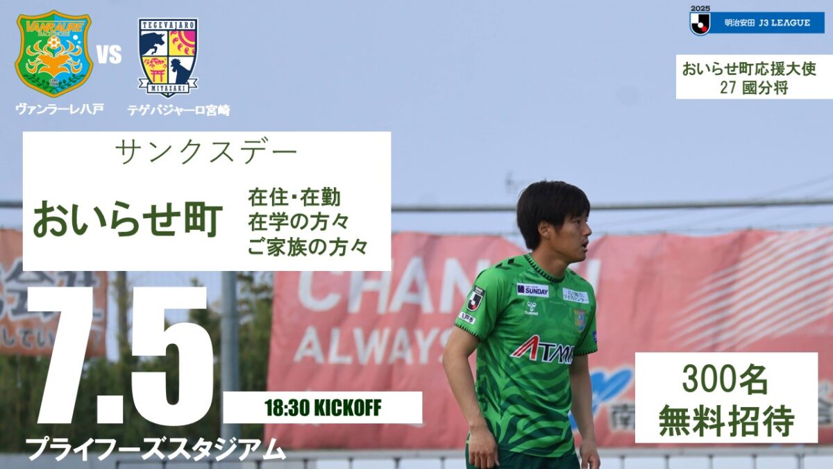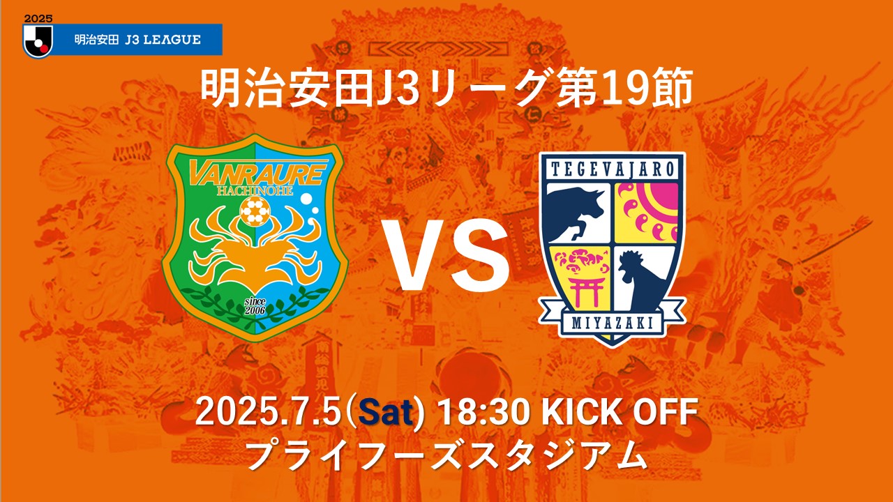 7月5日(土)に行われる2025明治安田J3リーグ第19節 テゲバジャーロ宮崎戦について、下記の通りご案内いたします。