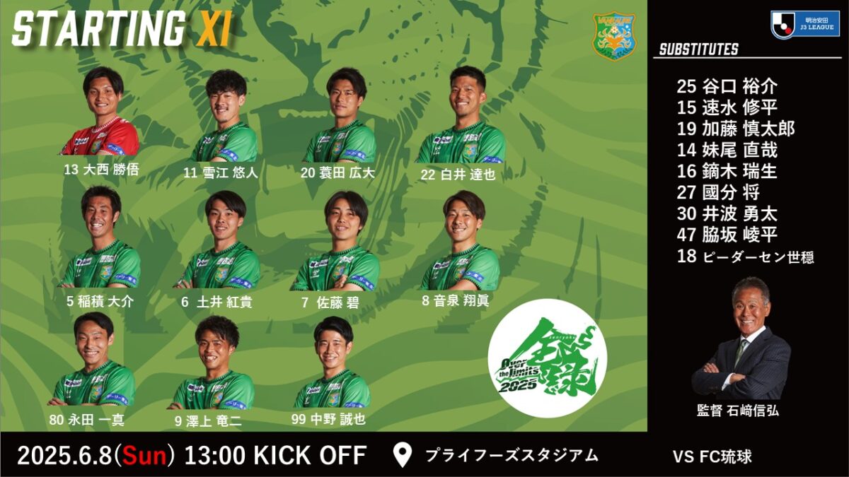 2025年6月8日(日)に行われました2025明治安田J3リーグ第15節 FC琉球戦の結果をお知らせいたします。