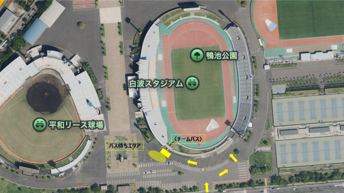 (※選手バス動線を塞ぐ行為は禁止といたします。)