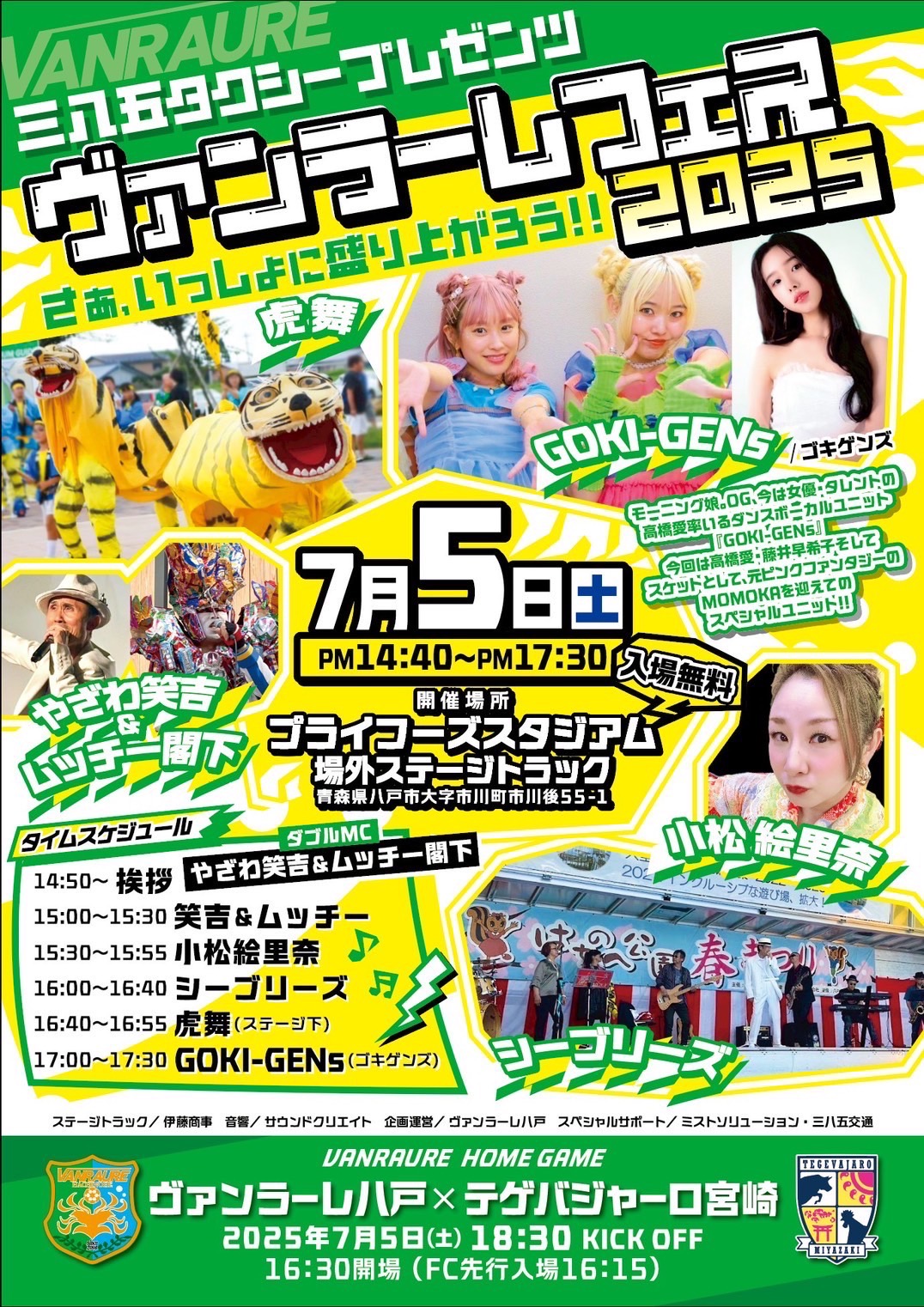 7月5日(土)に行われる2025明治安田J3リーグ第19節 テゲバジャーロ宮崎戦について、下記の通りご案内いたします。