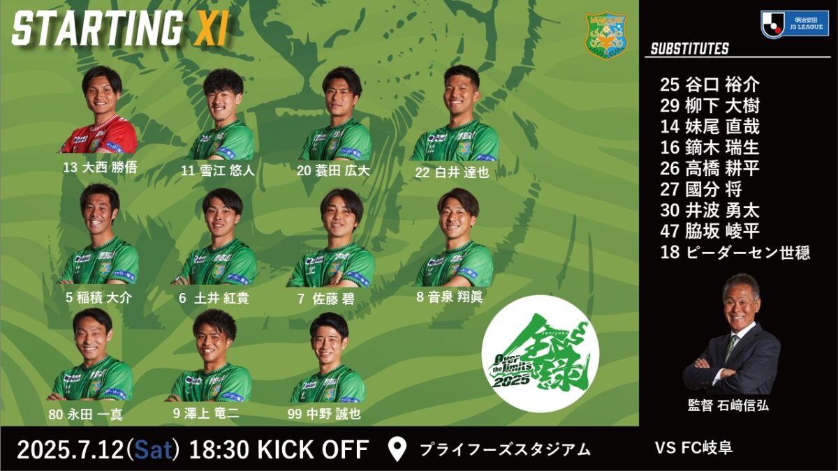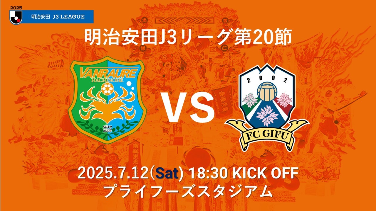 2025年7月12日(土)に行われました2025明治安田J3リーグ第20戦FC岐阜戦の試合結果をお知らせいたします。
