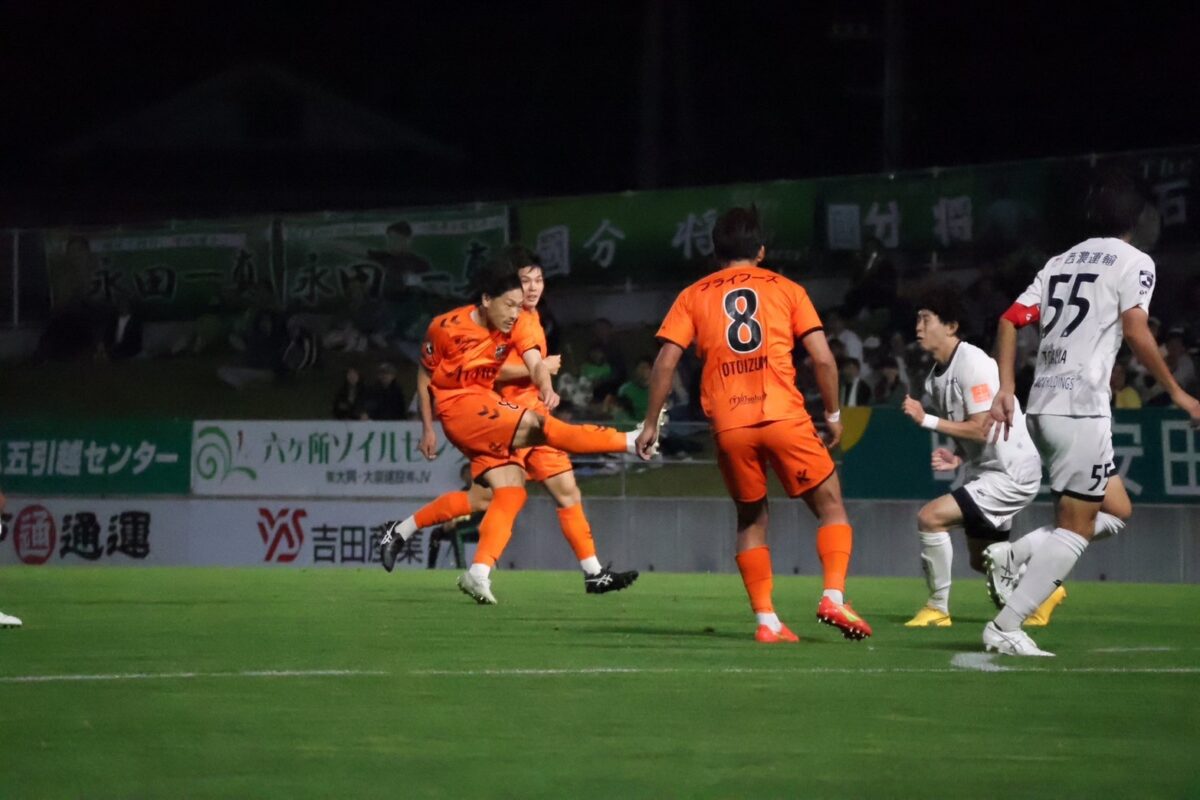 誠也君が相手キーパーに競り合ってくれて、ゴールが空いていたんですけど角度があまりなかったので枠に入れることだけを意識しました。
