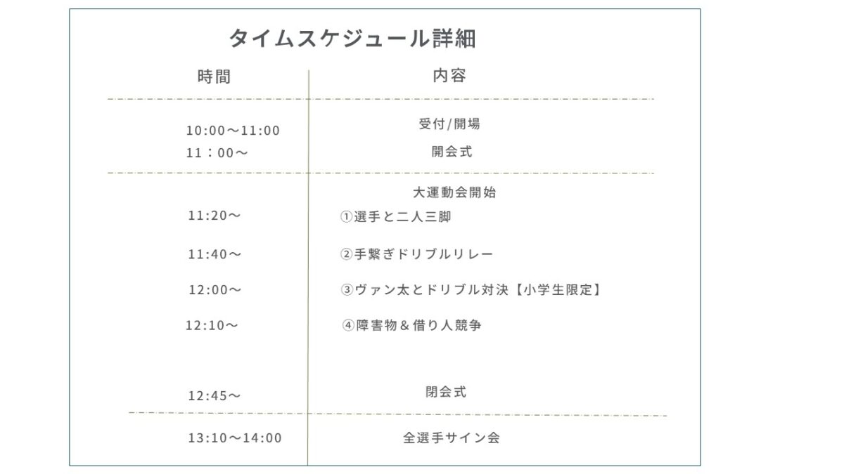 ※株式会社スポーツモチベーションブースにつきましては、10:15~13:00(ピッチ内)13:10~14:00(場外コンコース)にて開催予定となります。
