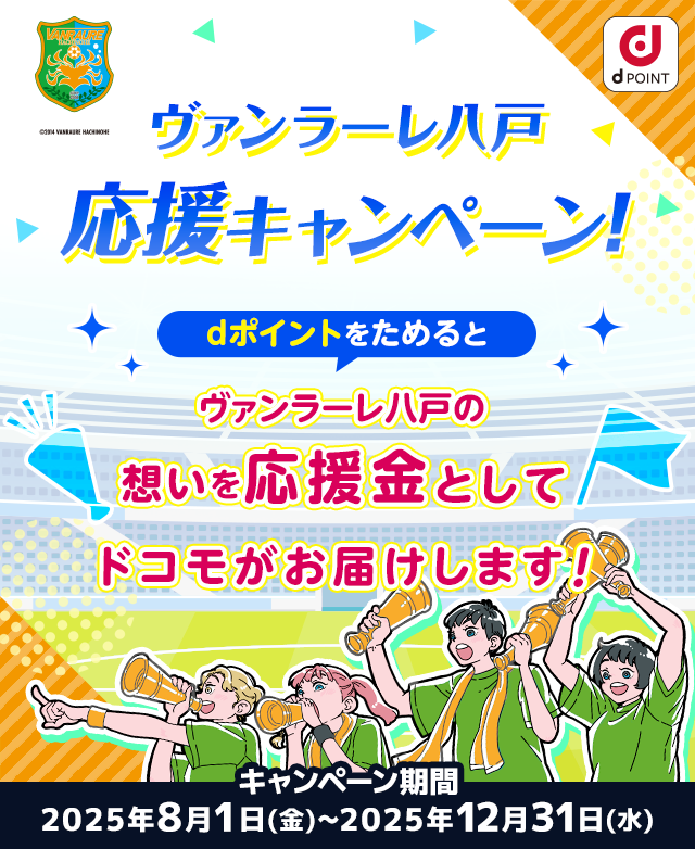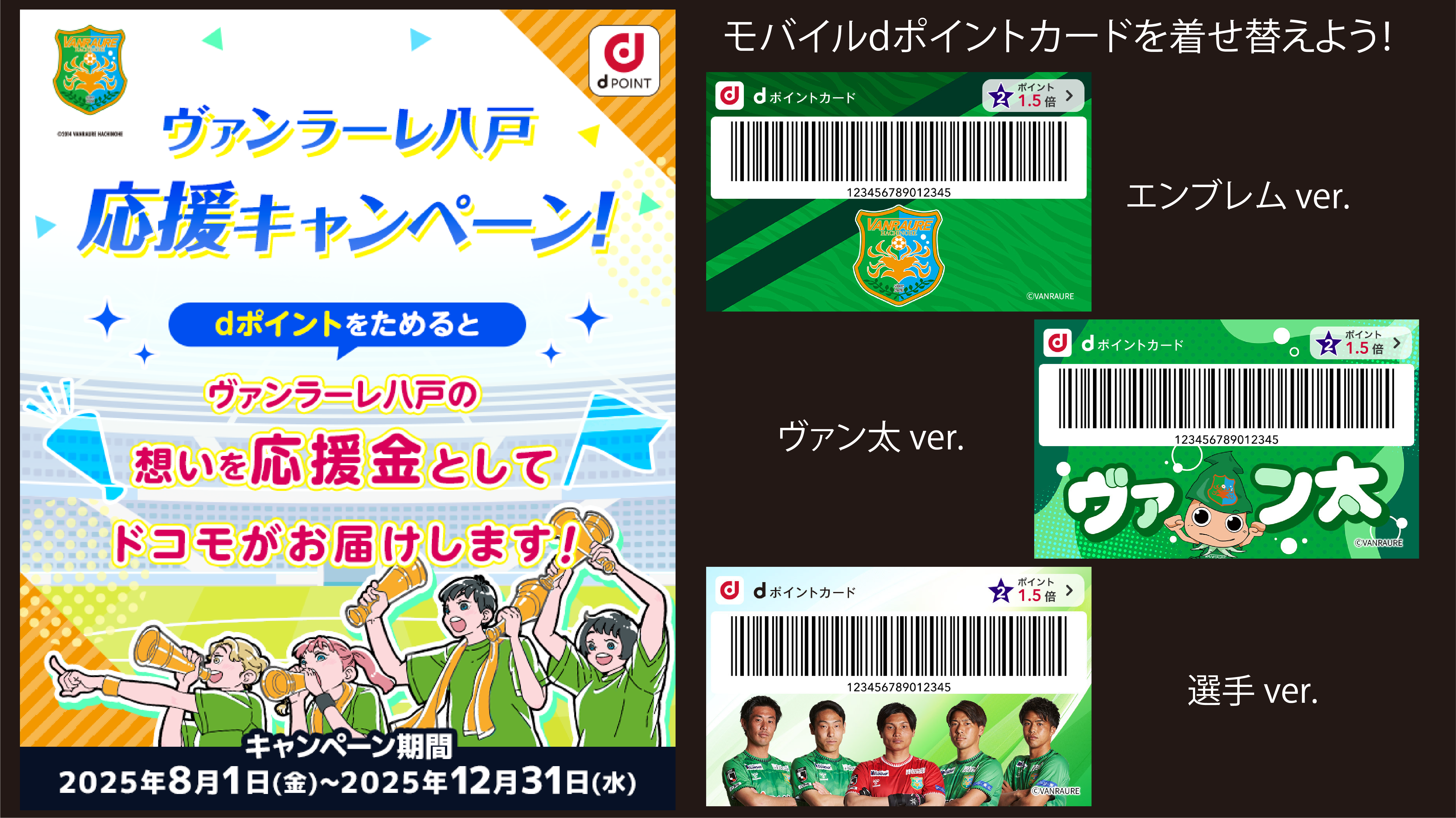 普段のお買い物でたまったdポイントがヴァンラーレ八戸の応援になります!