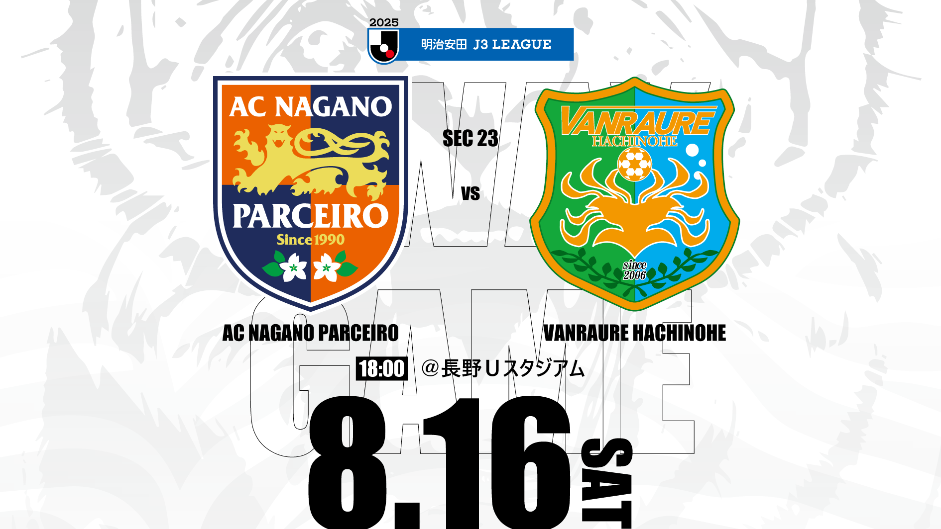 8月16日(土)に開催される2025明治安田J3リーグ第23節 AC長野パルセイロ戦について、下記の通りご案内いたします。