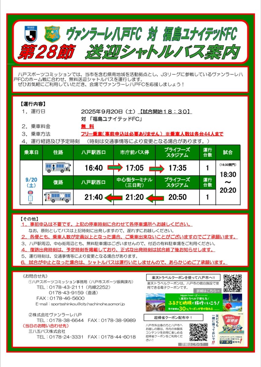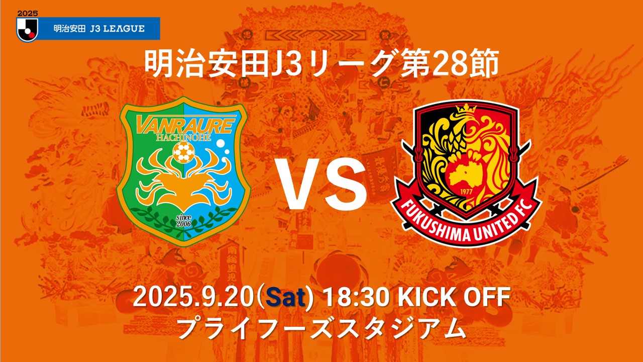 9月20日(土)に行われる2025明治安田J3リーグ第28節 福島ユナイテッドFC戦について、下記の通りご案内いたします。
