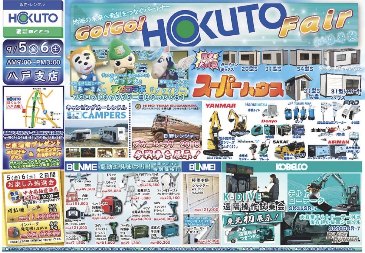 9月5日(金)に開催されます株式会社ほくとう様の展示会イベント「GO!GO!HOKUTO Fair」へ参加いたしますのでお知らせいたします。