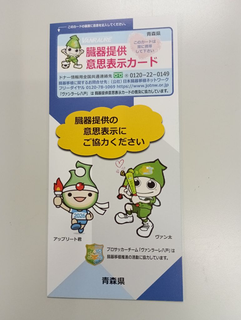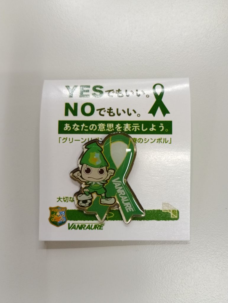より多くの方に臓器移植の理解を深めてもらうため、移植医療のシンボルカラーと同様にヴァンラーレ八戸のチームカラーがグリーンであることから、コラボレーションした臓器提供意思表示カード付きリーフレットを配布いたします。