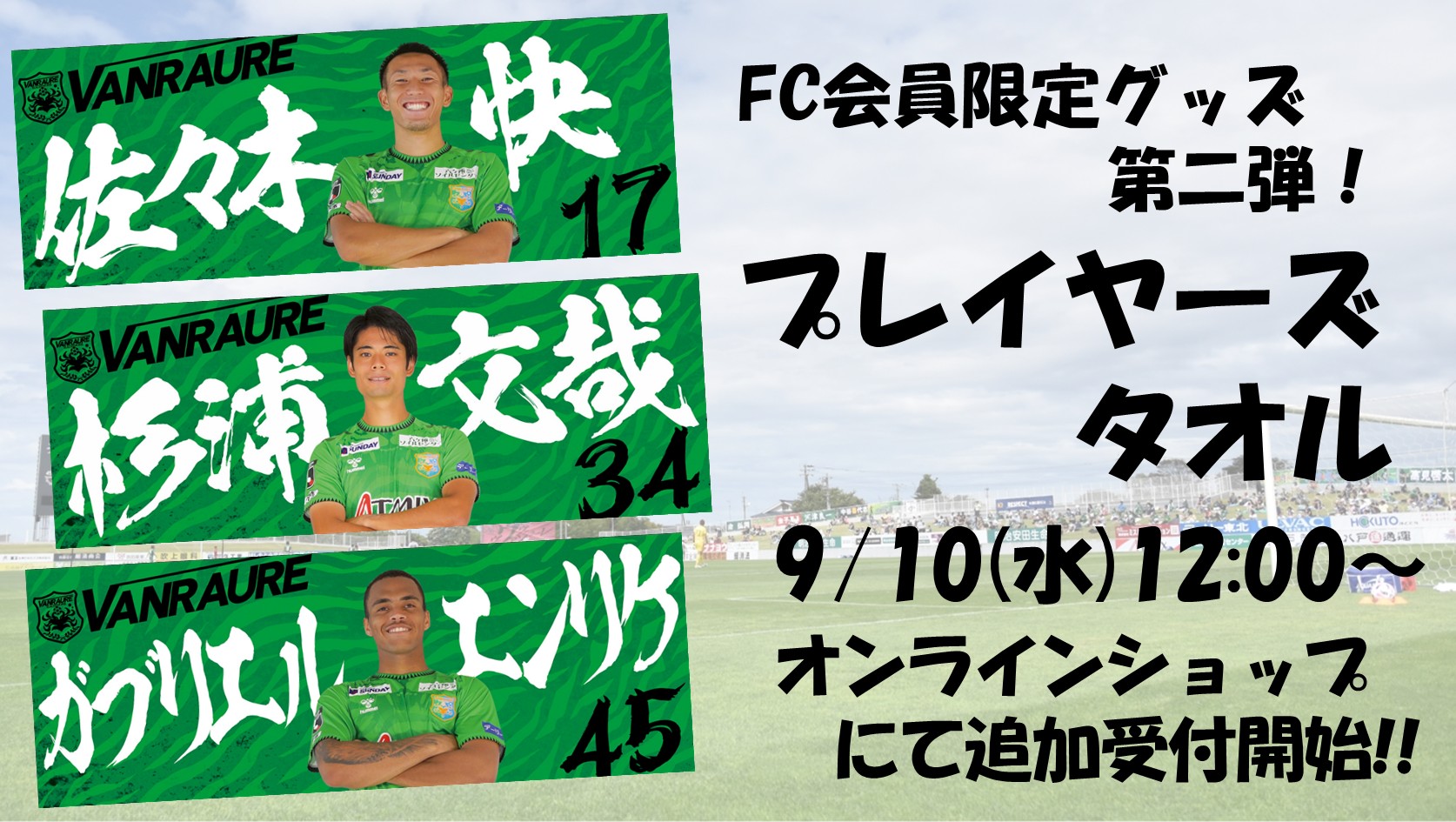 ヴァンラーレ八戸公式ファンクラブ2025会員限定グッズの第二弾!「プレイヤーズタオル」