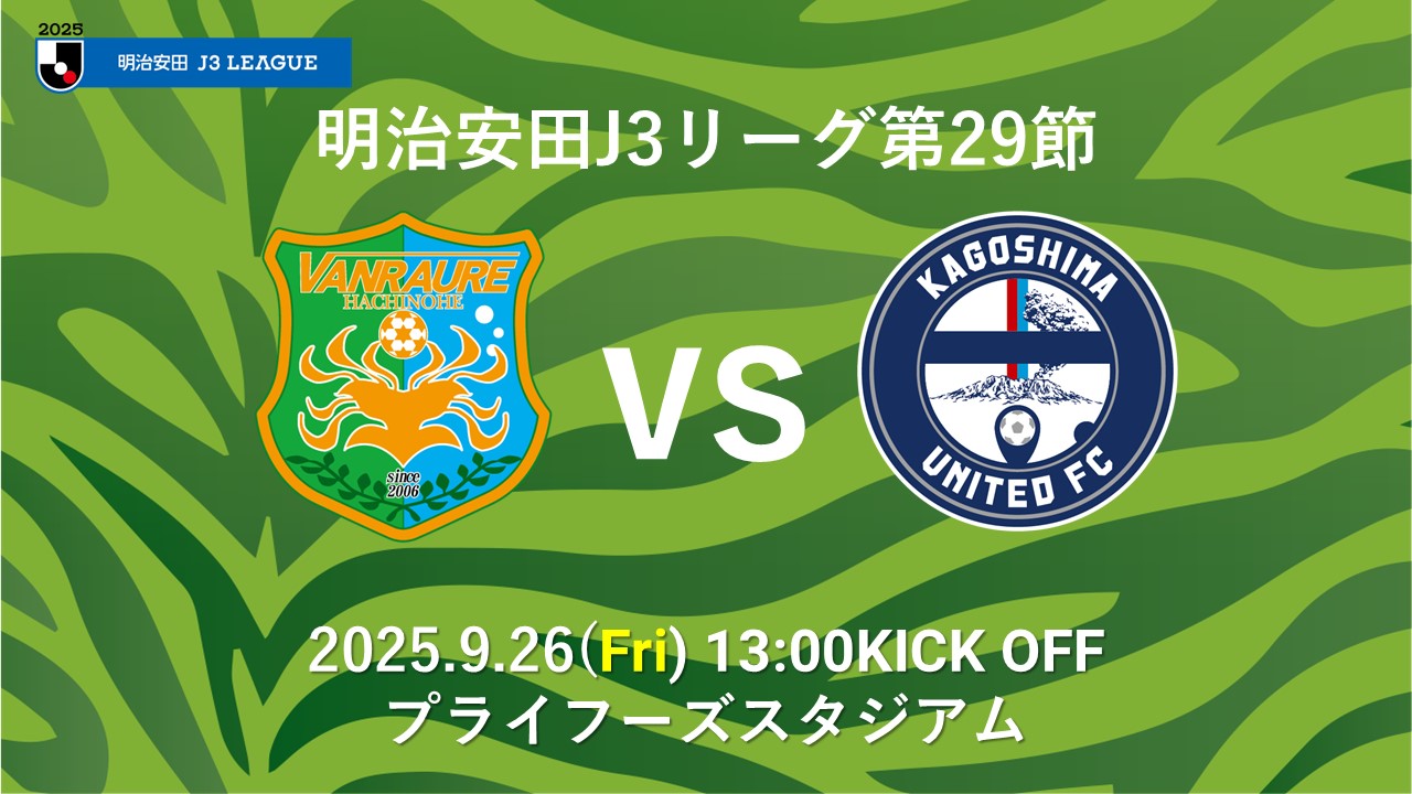2025年9月26日(金)に行われました2025明治安田J3リーグ第29節鹿児島ユナイテッドFCの試合結果をお知らせいたします。
