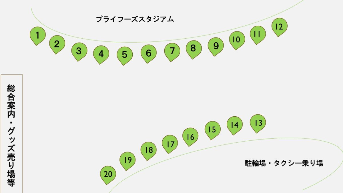 ※北エリアゲートは通常時開放しておりません。メインスタンドへのご入場を希望されるお客様は、南エリアゲートよりご入場ください。