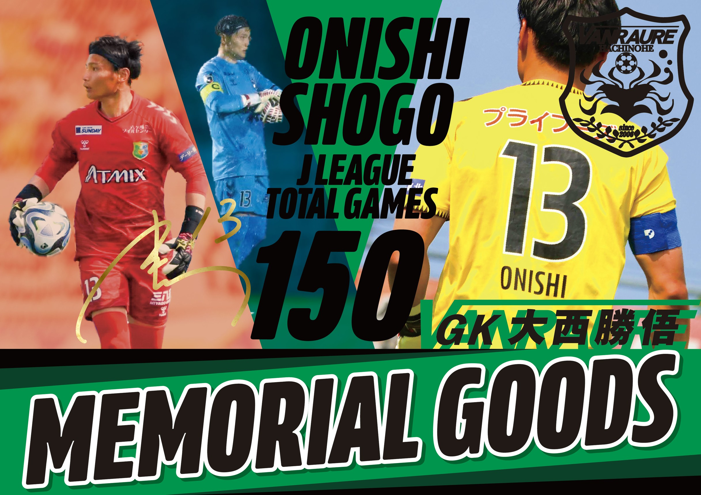 大西勝俉選手がJリーグ通算150試合出場を達成したことを記念して、メモリアルグッズを数量限定にて販売いたします。
