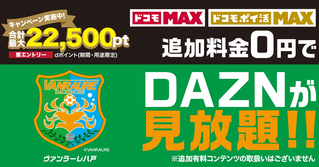 ヴァンラーレ八戸は、株式会社NTTドコモ 様との協業により、「ドコモ MAX」「ドコモ ポイ活 MAX」ご契約者様を対象としたキャンペーンを実施いたします。