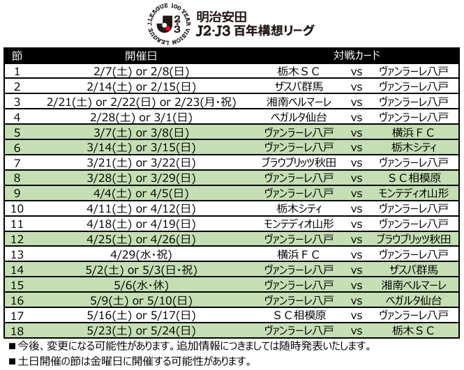 明治安田J2・J3百年構想リーグ 地域リーグラウンド各節対戦カード決定のお知らせ