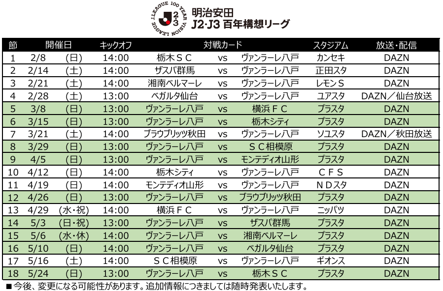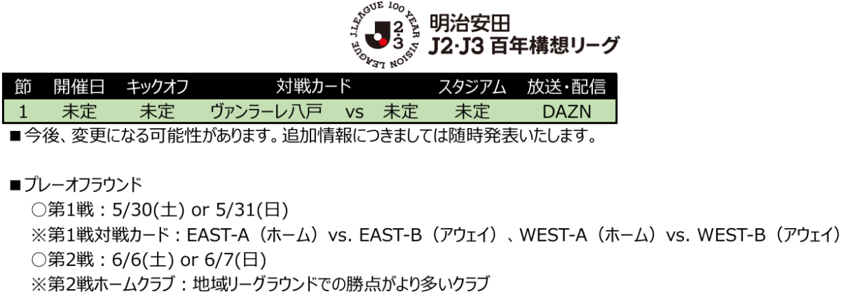 明治安田J2・J3百年構想リーグ 地域リーグラウンド第3節~第18節・プレーオフラウンド第1戦 日程発表