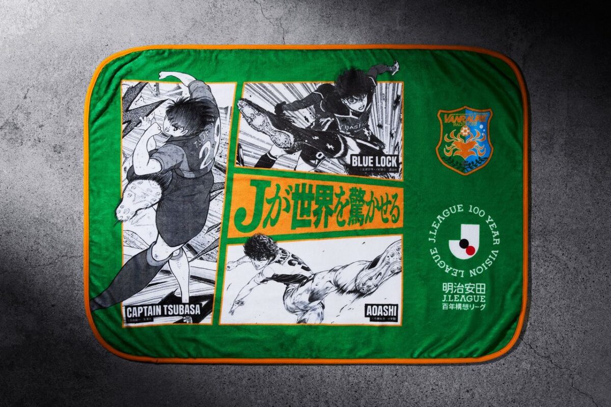 本企画は、シーズン移行に際して開催される特別な大会である「明治安田Jリーグ百年構想リーグ」を記念して実施されるものです。ブランケットのデザインには、日本が世界に誇るサッカー漫画「キャプテン翼」をはじめ、近年国内外で絶大な人気を誇る「ブルーロック」「アオアシ」の3つの作品との史上初のトリプルコラボレーションが実現しました。シーズン移行という大きな転換点を経て、Jリーグが今後さらに結果を出し、世界を驚かせるという意思を、3作品の主人公が放つ力強いシュートと重ね合わせ、メッセージとして発信していきます。