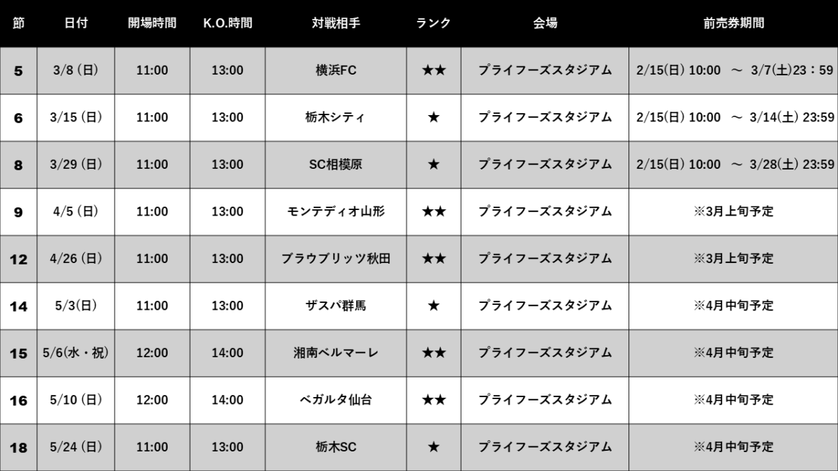 J2・J3百年構想リーグにおけるチケット販売スケジュールについて、下記の通りお知らせいたします。