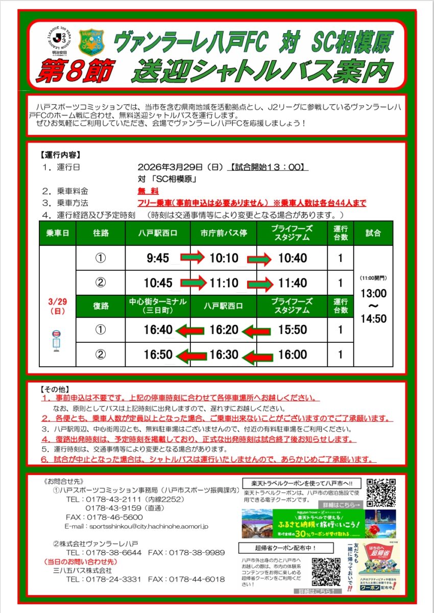 3月29日(日)に行われる明治安田J2・J3百年構想リーグ第8節SC相模原戦について、下記の通りご案内いたします。