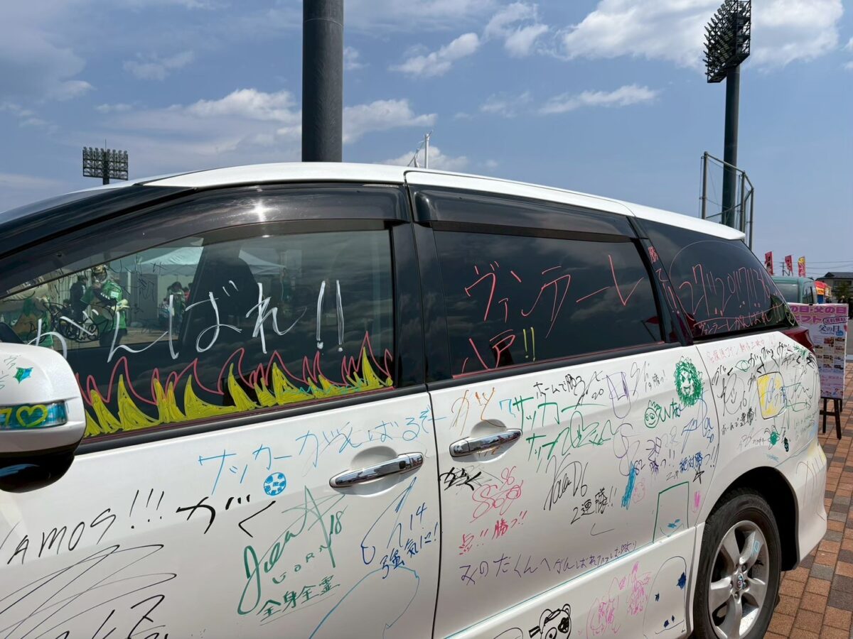 プライフーズスタジアム場外広場にて選手がサインやメッセージを書いた、メッセージな含む車両&タイヤ展示会を開催!