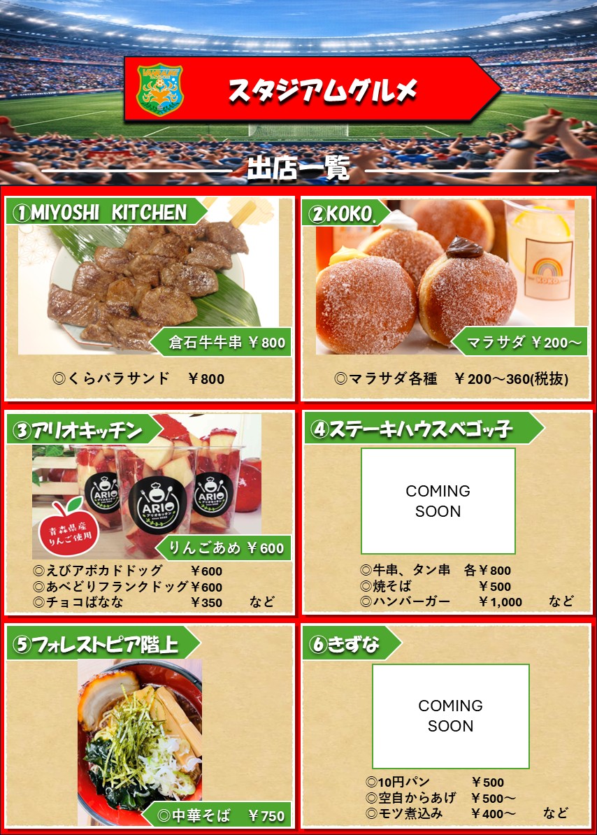 ※店頭販売は「フットサルアリーナ八戸」、「プライフーズスタジアム」、「フォレストピア階上」で販売となります。