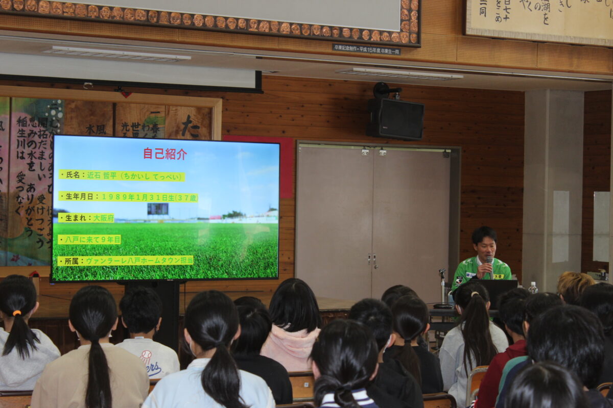 また、先生の皆さんがヴァンラーレ八戸のユニフォームとグッズを身に着けて今回のヴァンラーレタイムに参加してくださいました。