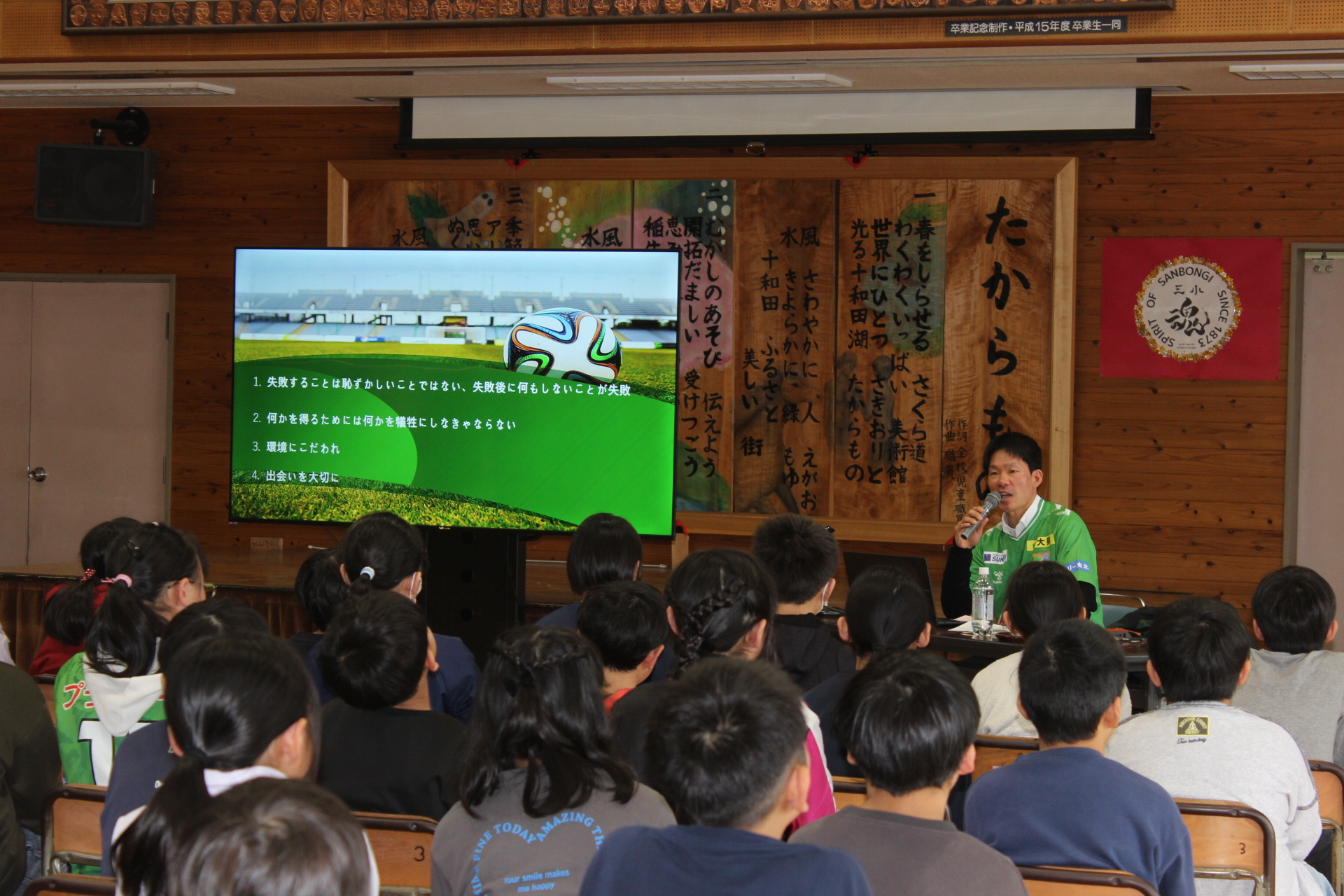 『サッカー選手のリアルな話・夢を持つ大切さ・失敗しても立ち直る強さ・環境にこだわる 』この4項目をテーマにお話をしました。