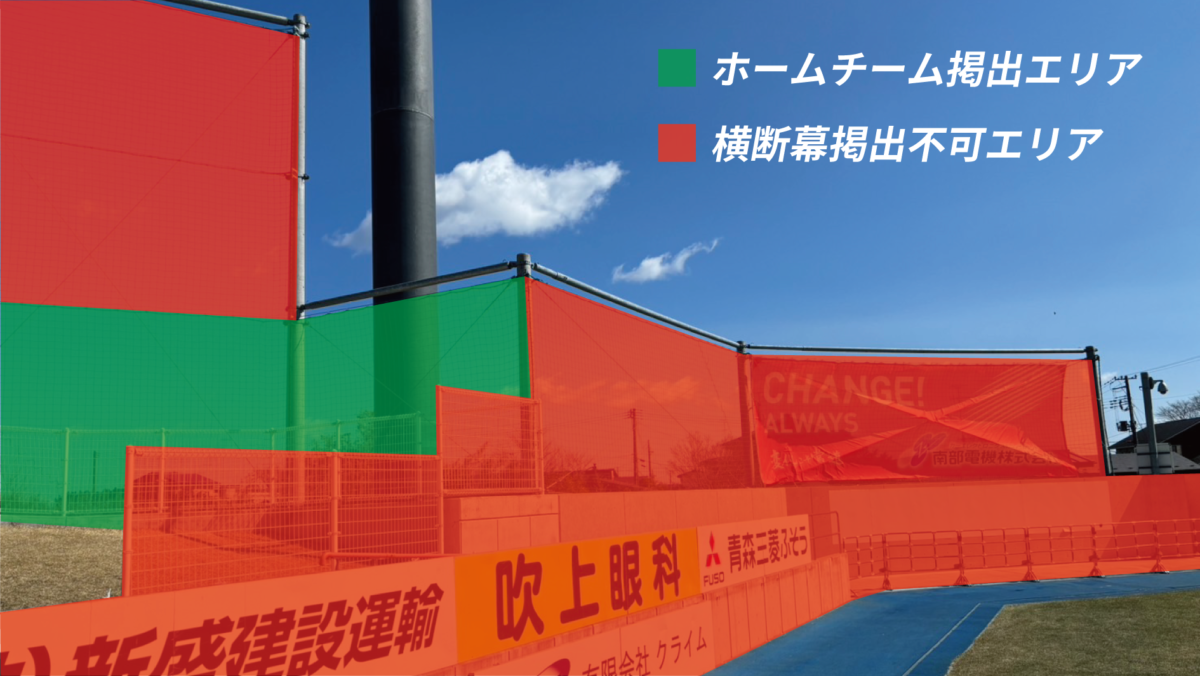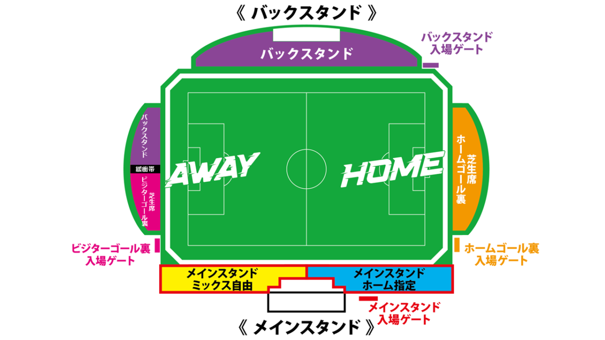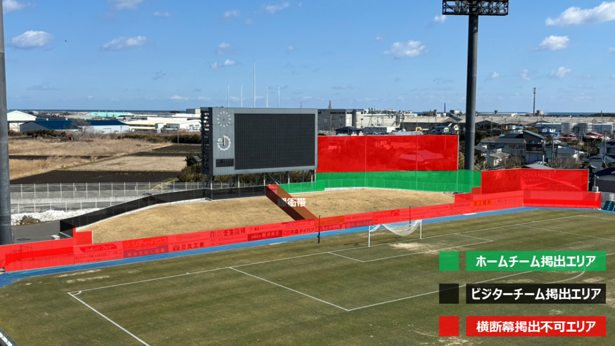 ○「芝生席ビジターゴール裏」席種内での使用の際は、大型映像装置全体が見えなくなるような使用は禁止とさせていただきます。