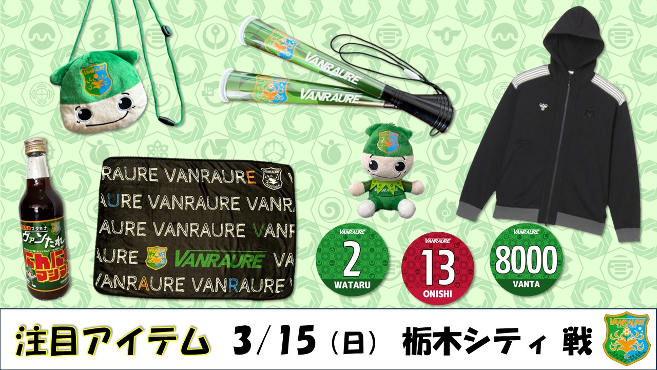 3月15日(日)に開催される明治安田J2・J3百年構想リーグ 第6節 栃木シティ戦のグッズ情報をお知らせします。