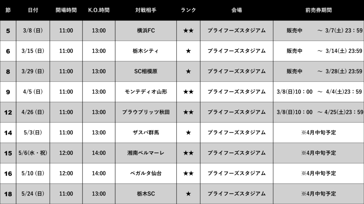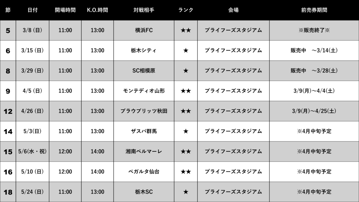 ※原則、1試合ごとの販売となり、直近の試合が終わり次第、次節の販売が開始となります。