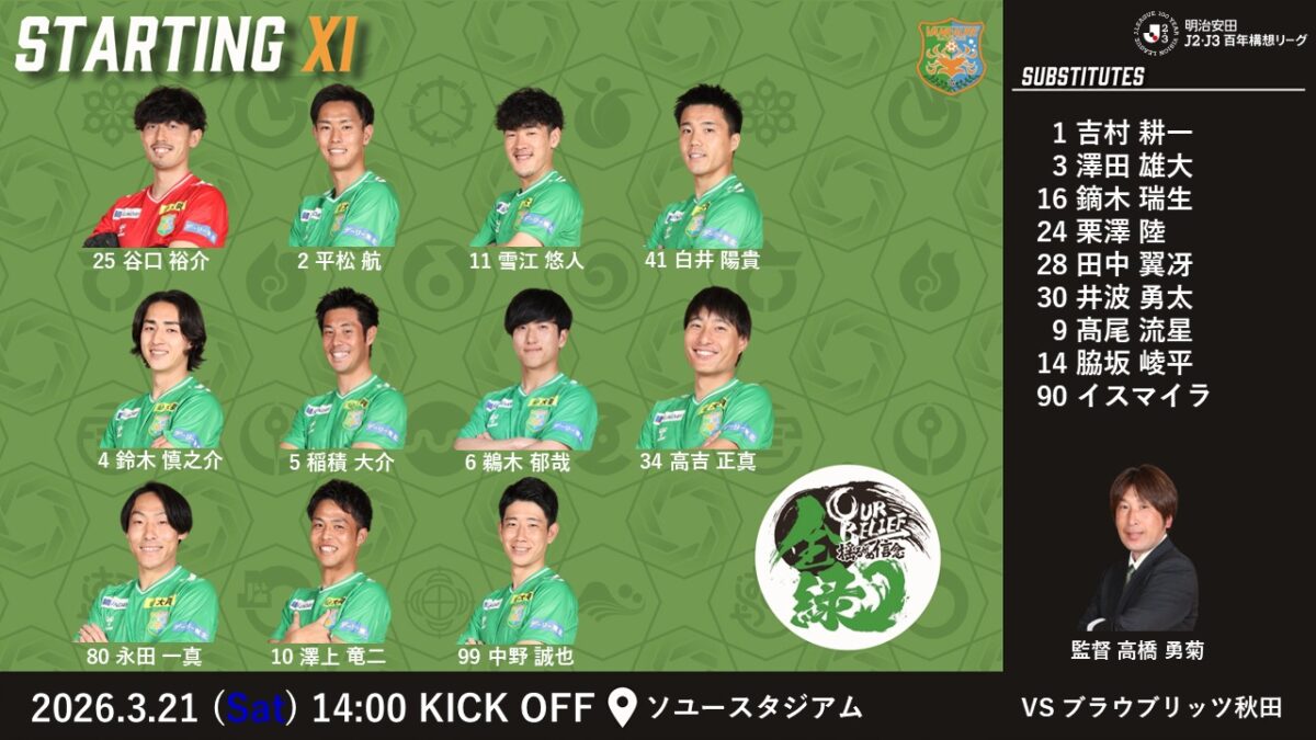 2026年3月21日(土)に行われました明治安田J2・J3百年構想リーグ地域リーグラウンド第7節ブラウブリッツ秋田戦の試合結果をお知らせいたします。