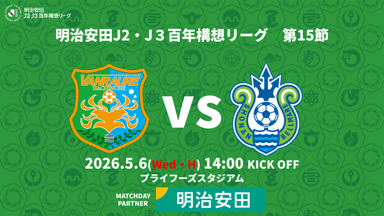 5月6日(水・休)に行われる明治安田J2・J3百年構想リーグ第15節湘南ベルマーレ戦について、下記の通りご案内いたします。