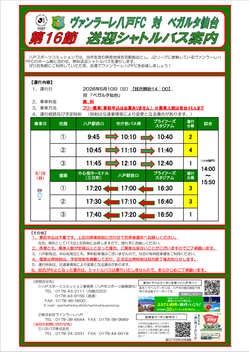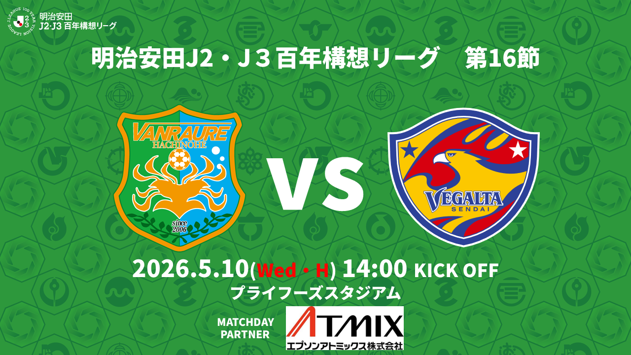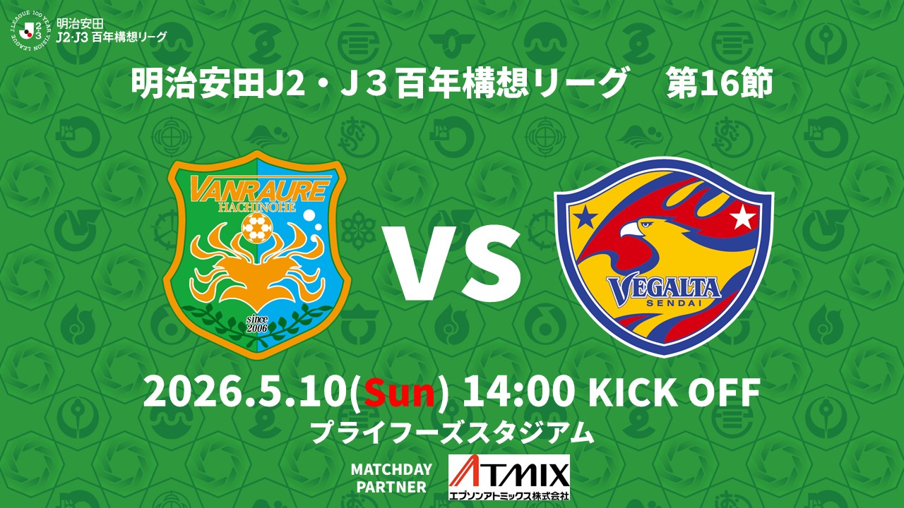 5月10日(日)に行われる明治安田J2・J3百年構想リーグ第16節ベガルタ仙台戦について、下記の通りご案内いたします。