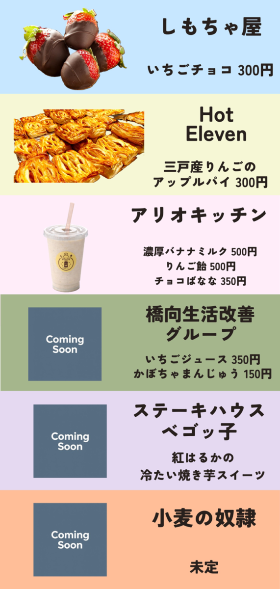 ※出店舗数、出店場所、メニュー等、変更になる可能性がございます。あらかじめご了承ください。