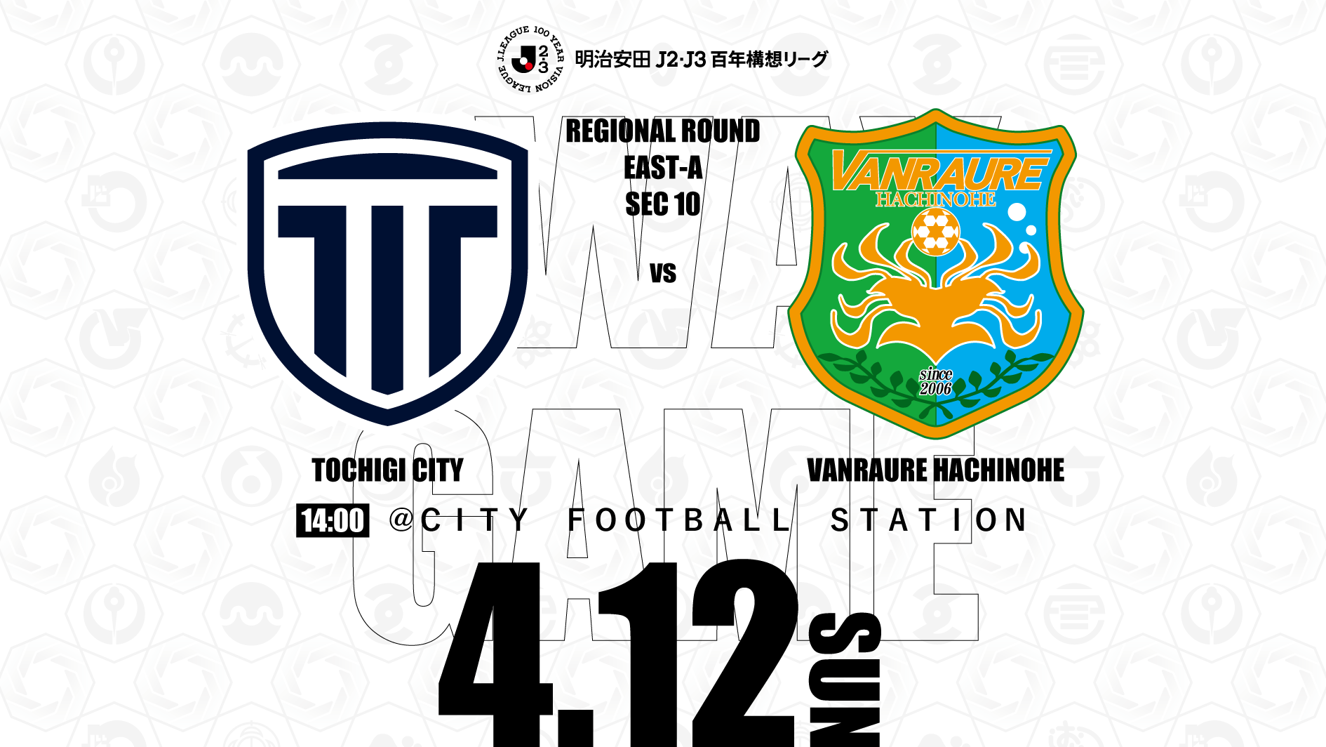 4月12日(日)に開催される明治安田J2・J3百年構想リーグ 地域リーグラウンド EAST-Aグループ 第10節 栃木シティ戦について、下記の通りご案内いたします。