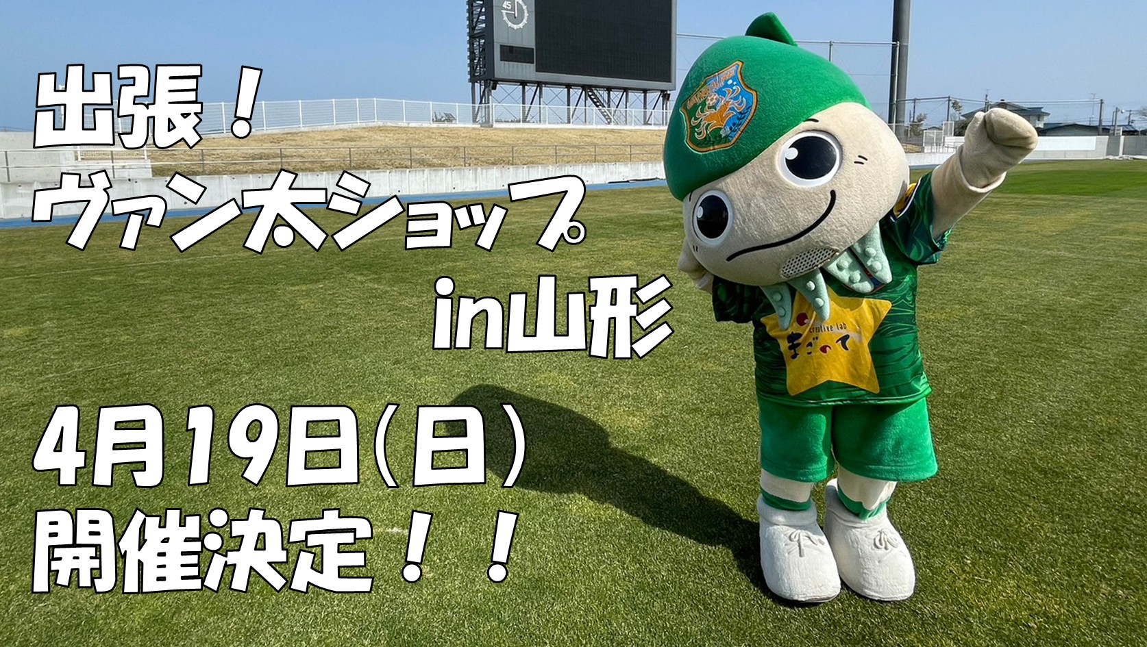4月19日(日)に開催される 明治安田J2・J3百年構想リーグ 第11節 モンテディオ山形戦におきまして、「出張!ヴァン太ショップin山形」を実施することが決定いたしましたのでお知らせいたします。