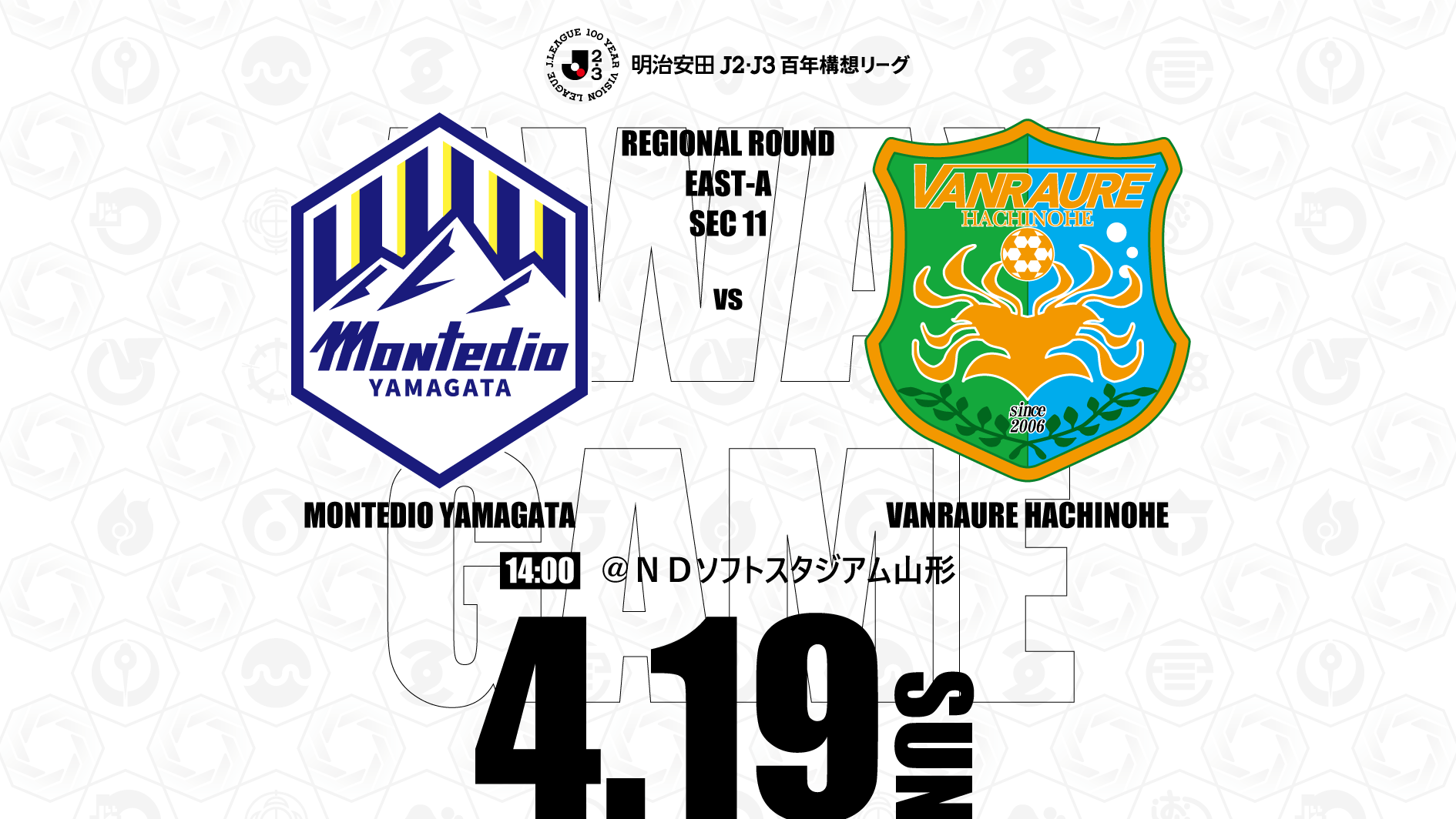 4月19日(日)に開催される明治安田J2・J3百年構想リーグ 地域リーグラウンド EAST-Aグループ 第11節 モンテディオ山形戦について、下記の通りご案内いたします。