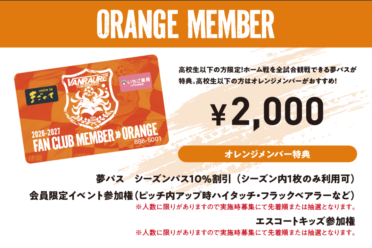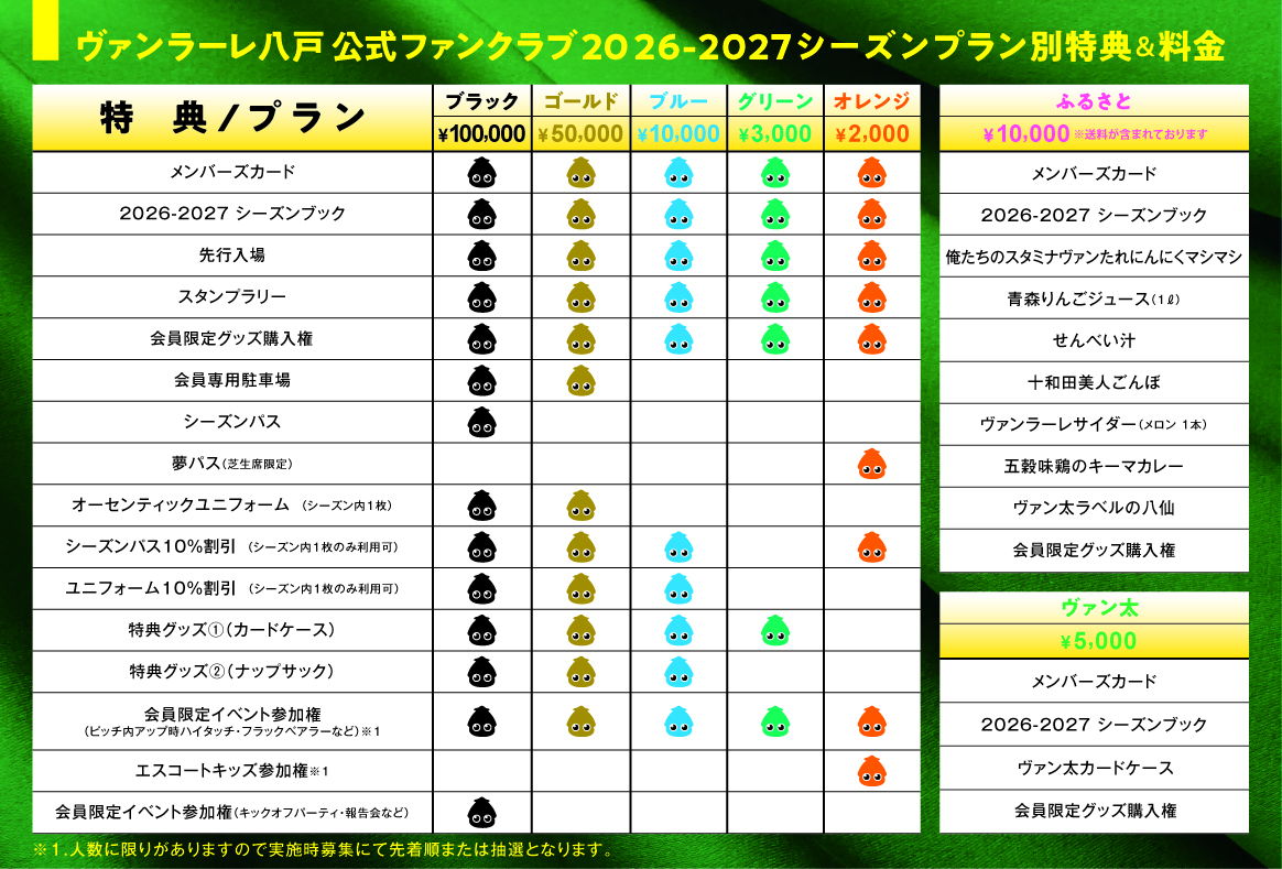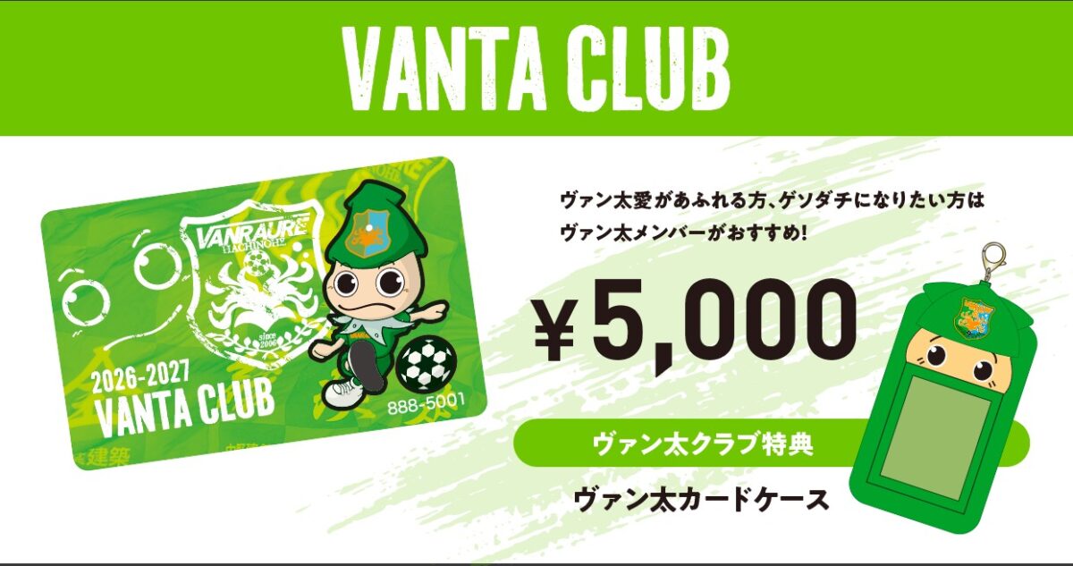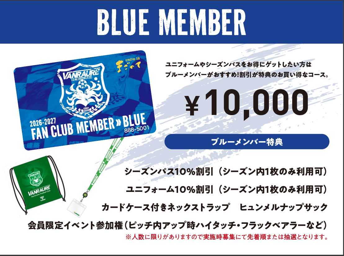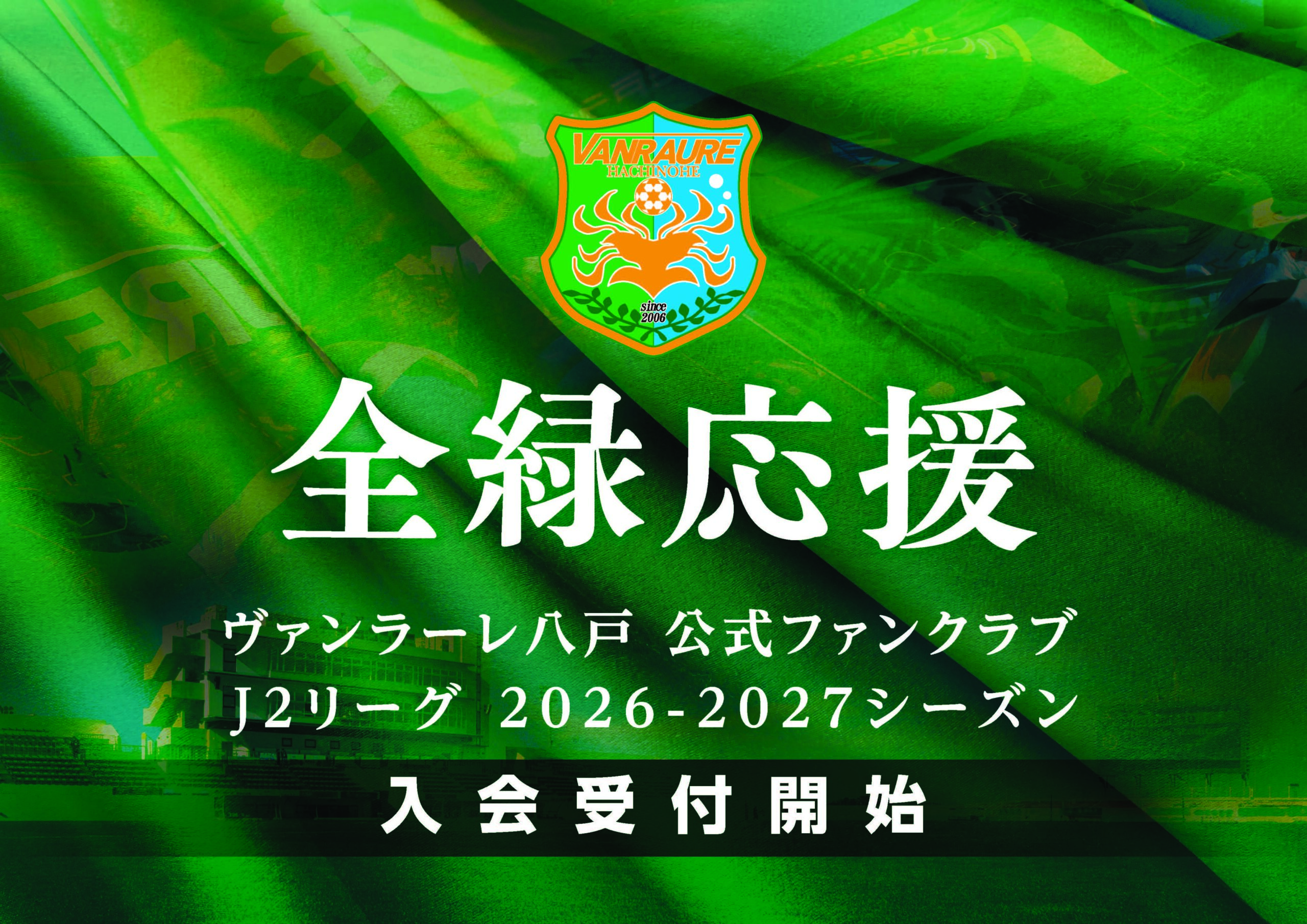 ヴァンラーレ八戸公式ファンクラブ 2026-2027 の詳細が決まりましたので、お知らせいたします。