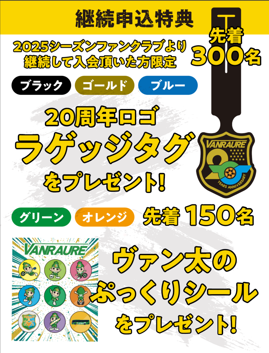 入会受付を、5月3日(日)開催の ザスパ群馬戦試合会場内ヴァン太ショップにて10:00より受付開始いたします。