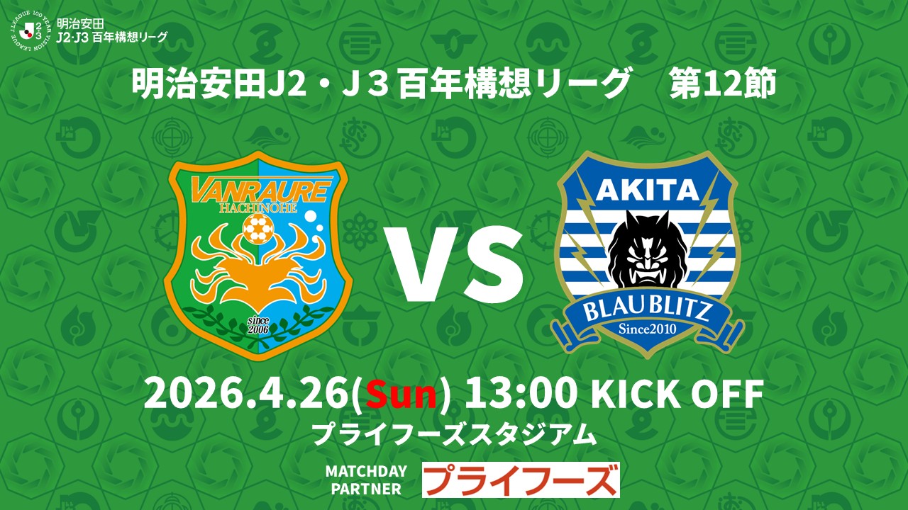 4月26日(日)に行われる明治安田J2・J3百年構想リーグ第12節ブラウブリッツ秋田戦について、チケットの販売状況を鑑み、芝生席ビジターゴール裏のエリアが以下のように変更となります。