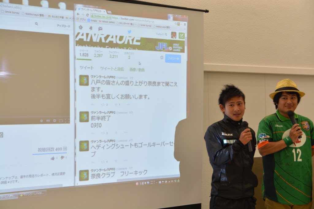 選手、監督と奈良クラブvsソニー仙台の戦況をSNSにて見守りました。